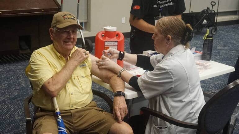 Bob Atkins, a Vietnam veteran, was one of the 400 residents who were registered for the event: “I’ve always gotten the flu shot, my wife and I, every year, so I think it’s important,” he said. “The ease of getting the shot here, so close, I can walk right over and get it.”